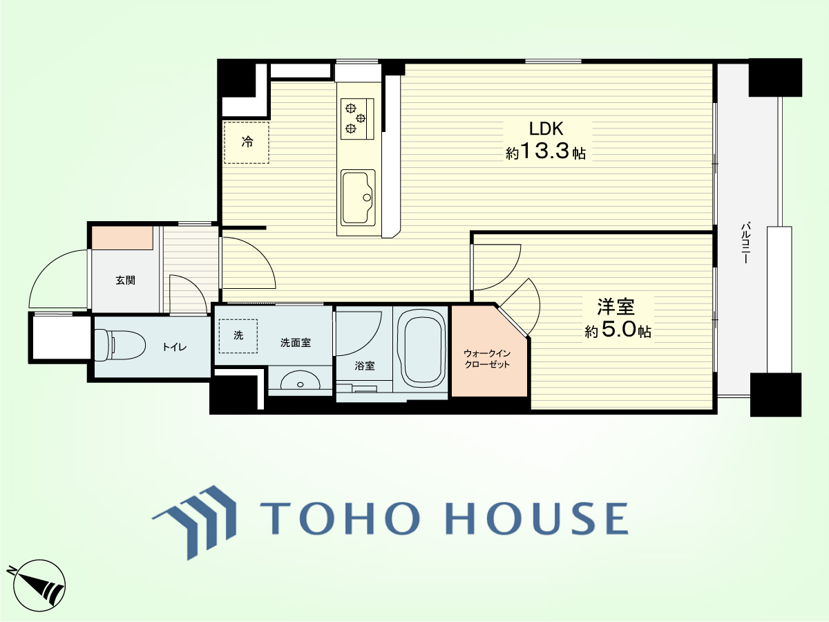 1LDK 専有面積41.29平米、バルコニー面積3.40平米