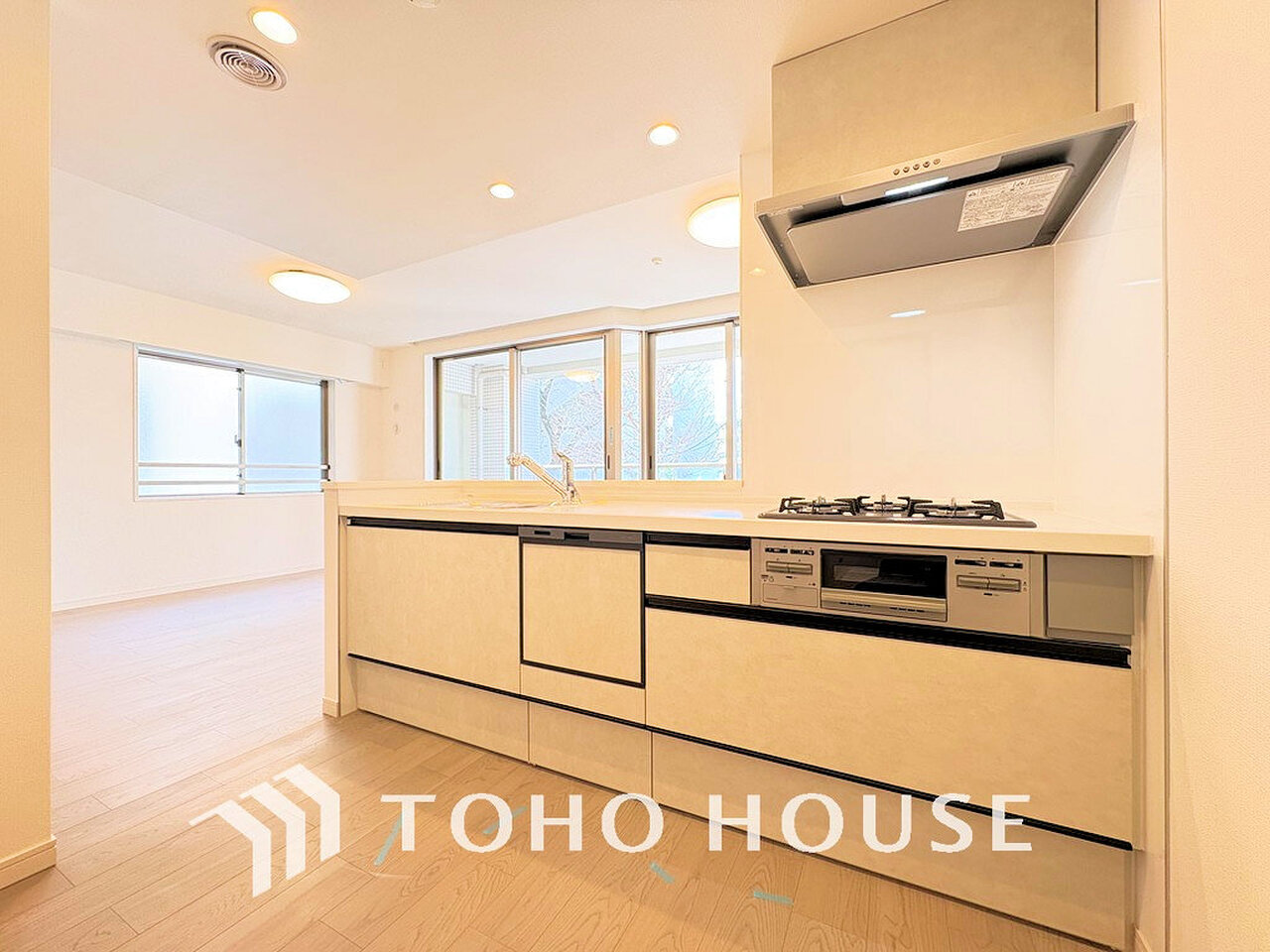シンプルな部屋の雰囲気に溶け合うナチュラルキッチン