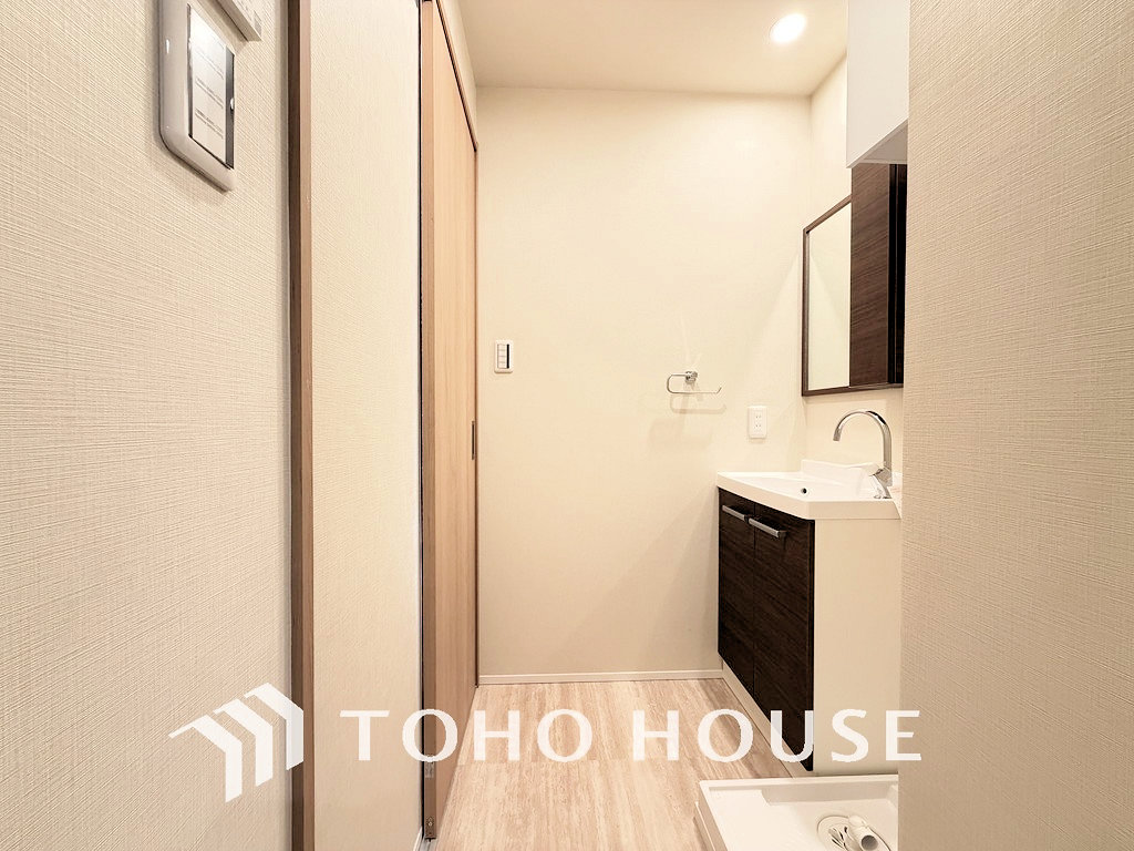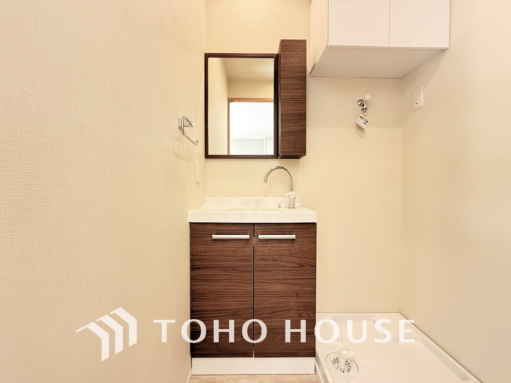 大きな洗面鏡付き、朝の身支度も楽しくなりますね