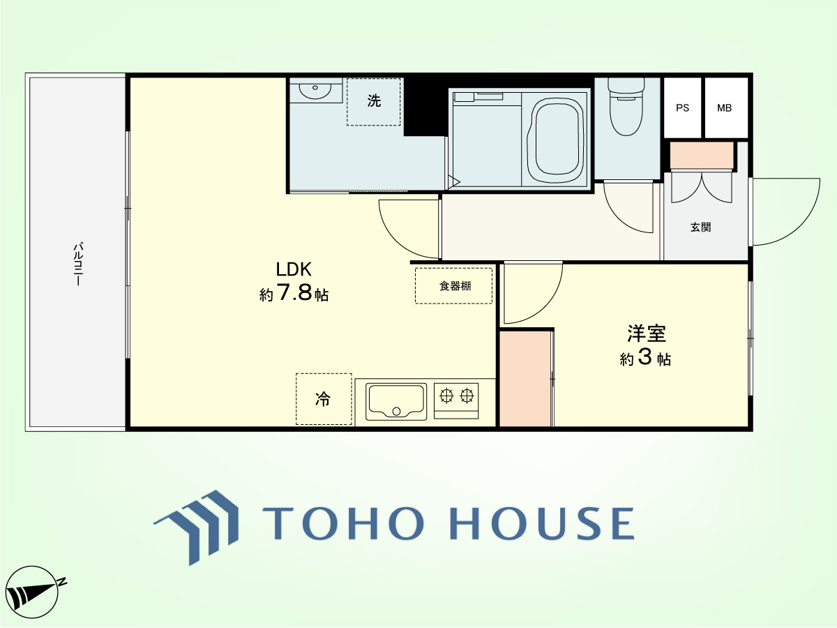 1LDK 専有面積33.92平米、バルコニー面積3.18平米