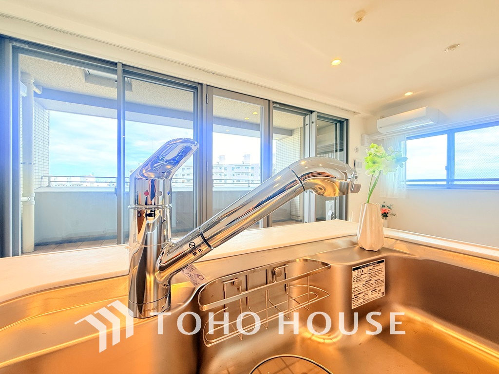浄水機が内蔵されている便利なシャワー水栓タイプのシンクです