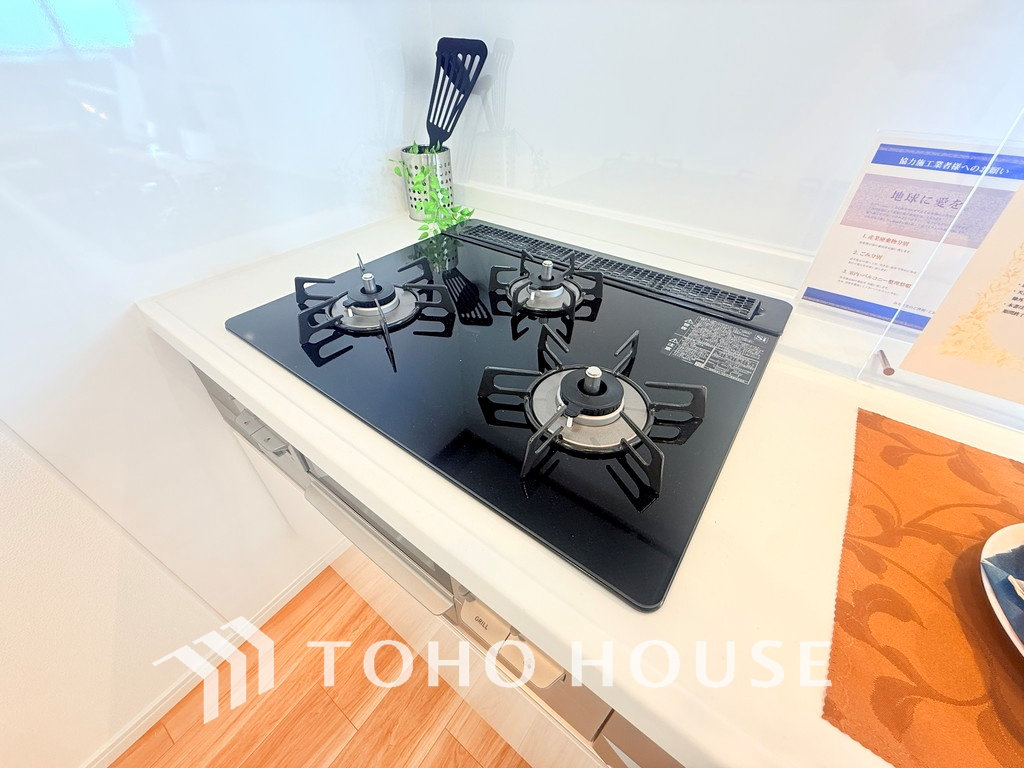 3口ガスコンロで効率よくお料理できますね
