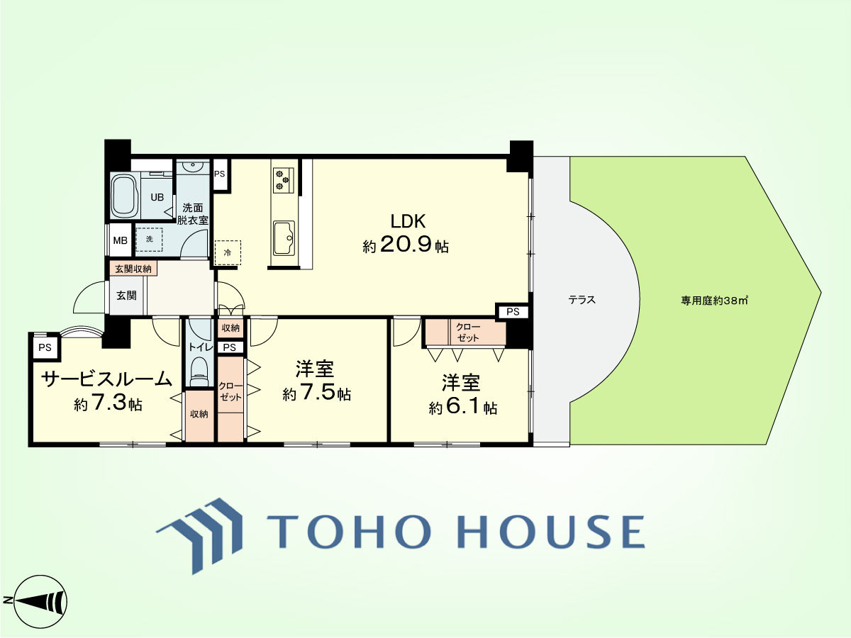 2SLDK 専有面積88.30平米、テラス面積15.72平米、専用庭面積15.72平米