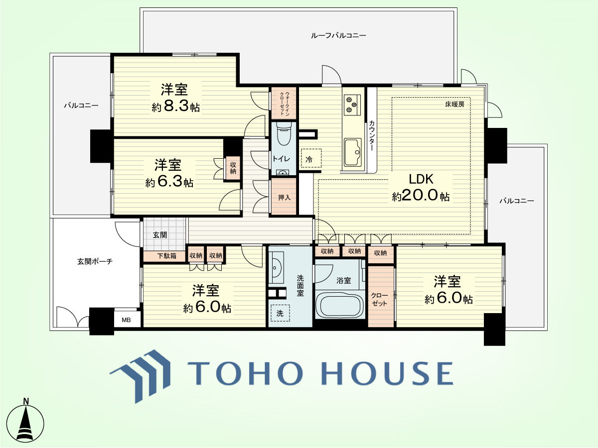 4LDK 専有面積102.36平米、バルコニー面積22.99平米