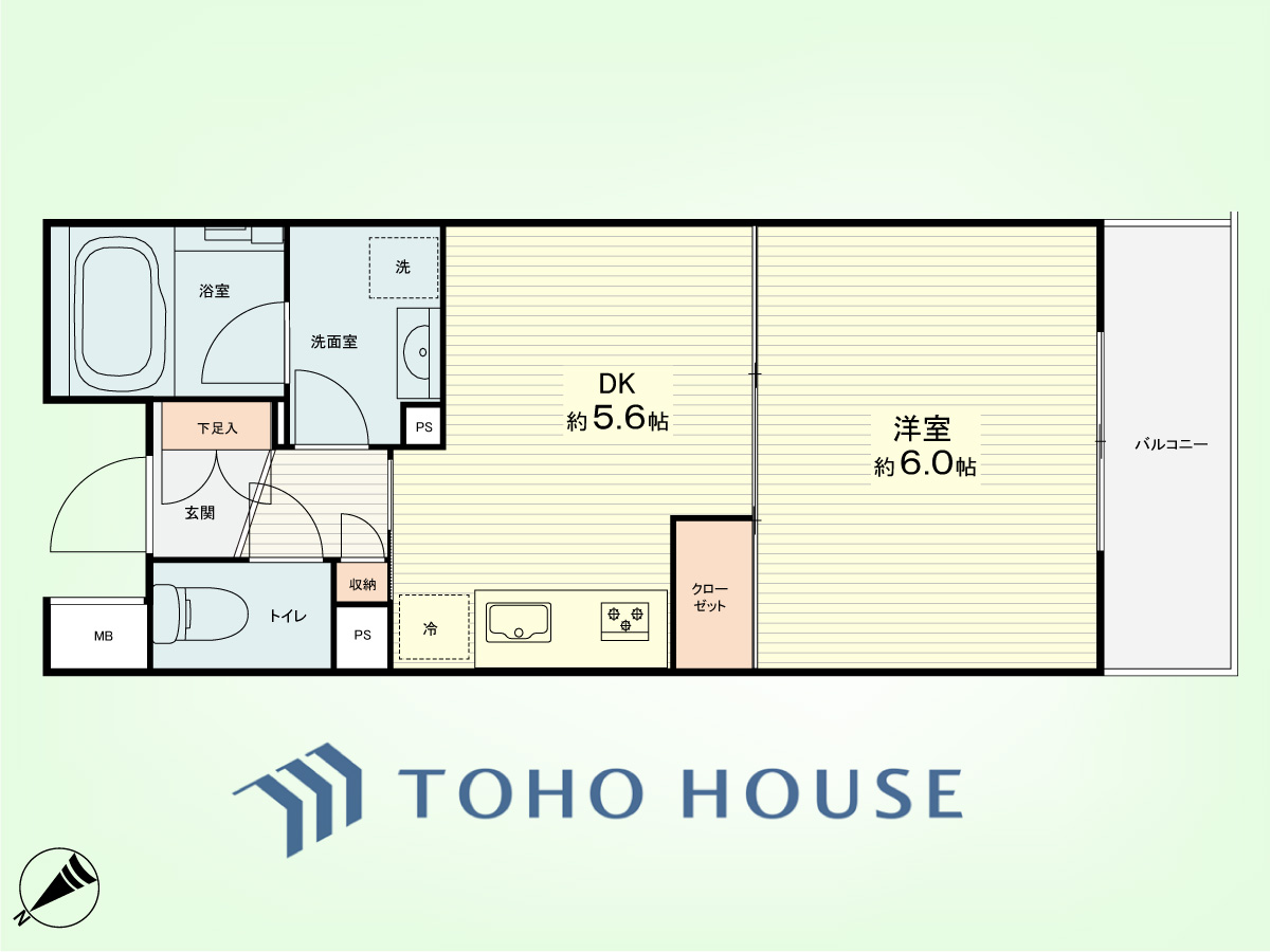 1DK 専有面積28.79平米、バルコニー面積3.96平米