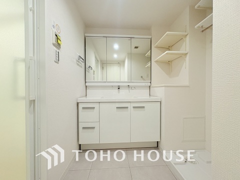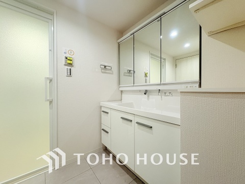 大きな洗面鏡付き、朝の身支度も楽しくなりますね