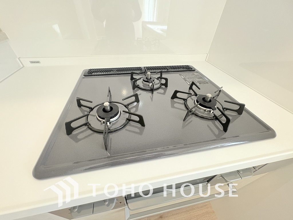 3口ガスコンロで効率よくお料理できますね
