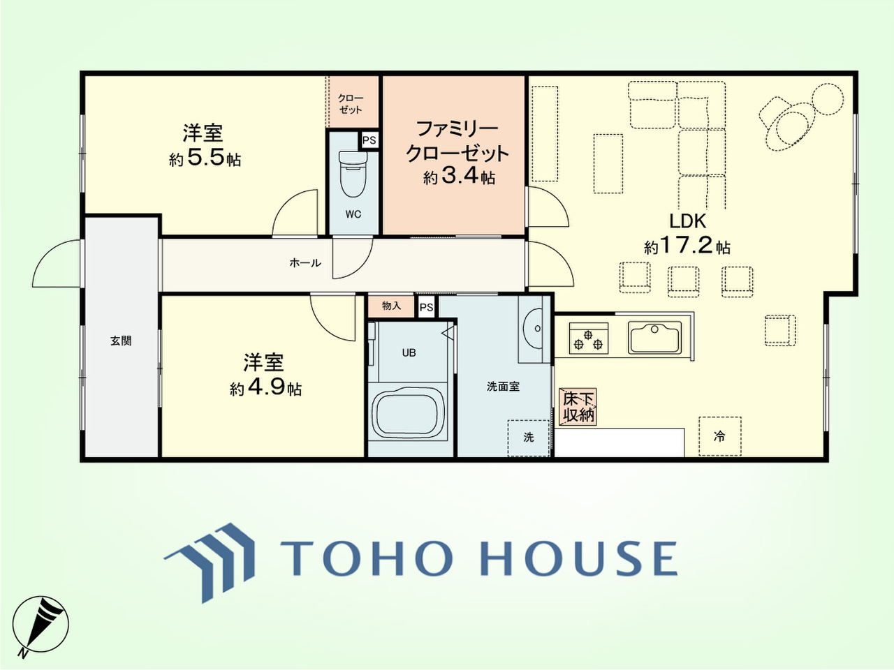 広がりのある住空間、家族が集まるリビング・ダイニング