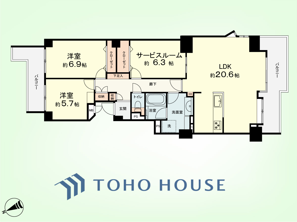 2SLDK 専有面積89.41平米、バルコニー面積14.85平米