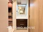 新規設置の洗面化粧台。収納豊富で使い勝手の良い3面鏡です