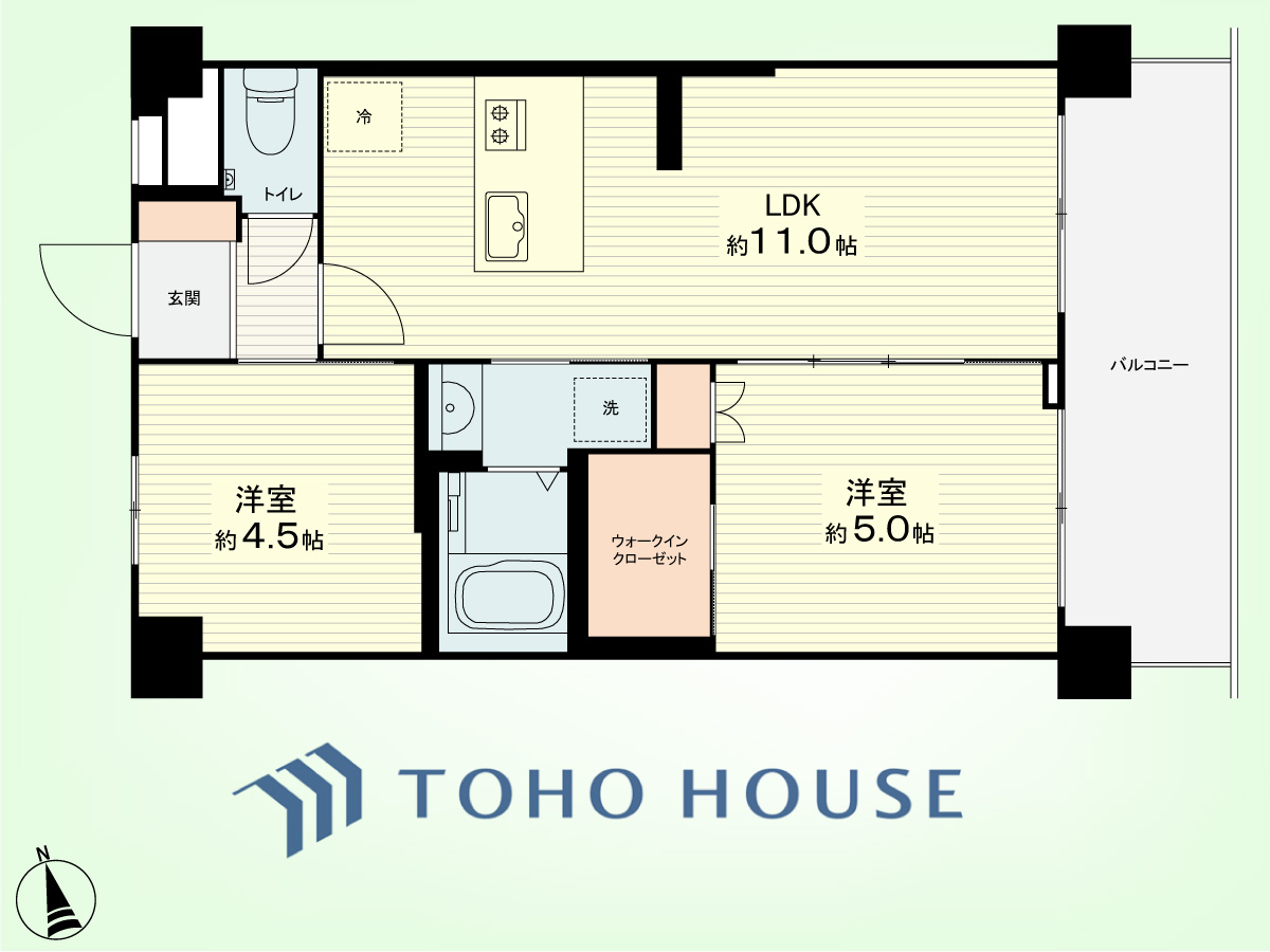 2LDK 専有面積44.25平米、バルコニー面積7.95平米