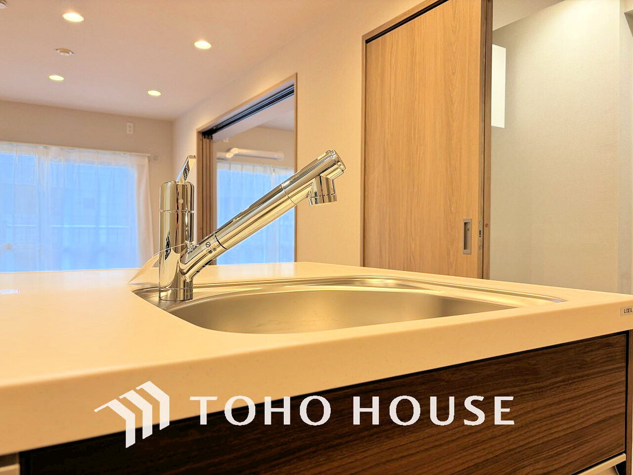 浄水機が内蔵されている便利なシャワー水栓タイプのシンクです