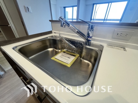 浄水機が内蔵されている便利なシャワー水栓タイプのシンクです