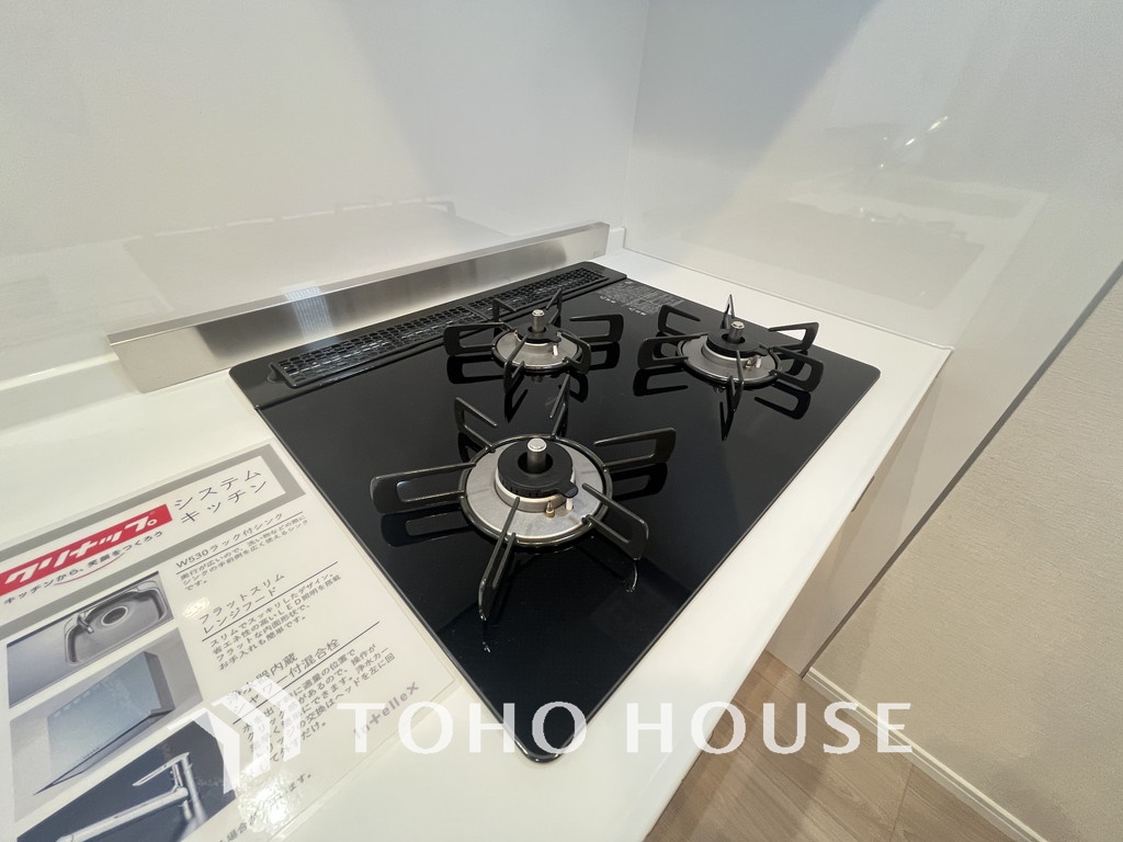 3口ガスコンロで効率よくお料理できますね
