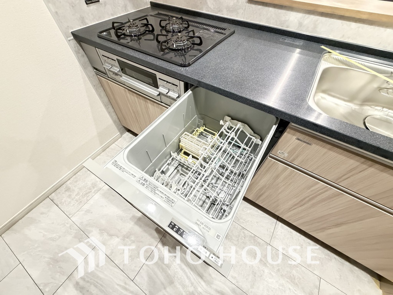 ビルトイン式食洗機を完備した、機能性に優れたシステムキッチン