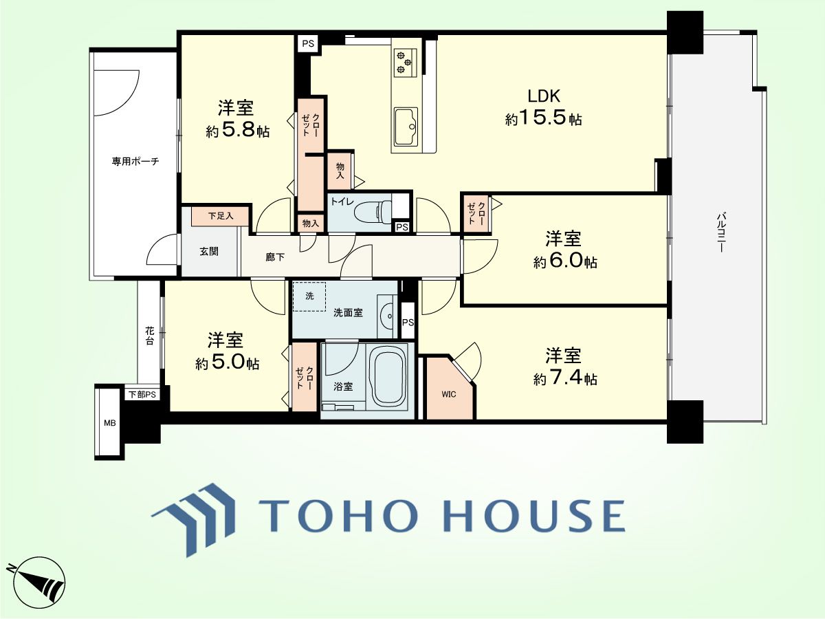 4LDK 専有面積85.71平米、バルコニー面積16.40平米