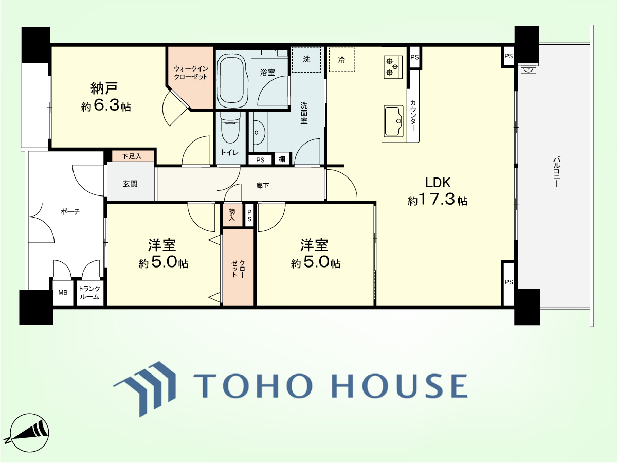 2SLDK+TR 専有面積75.36平米、バルコニー面積13.4平米
