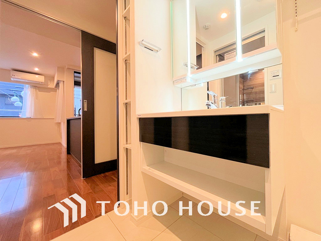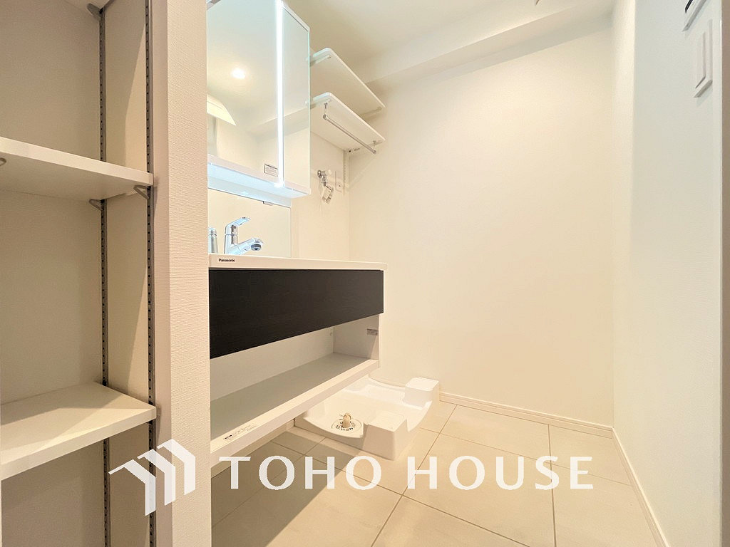 大きな洗面鏡付き、朝の身支度も楽しくなりますね