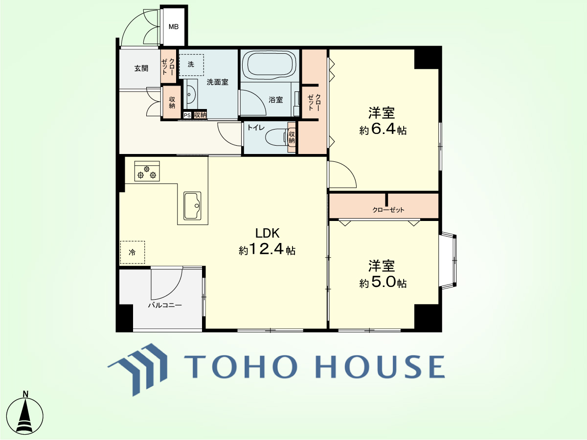2LDK 専有面積55.57平米、バルコニー面積3.36平米
