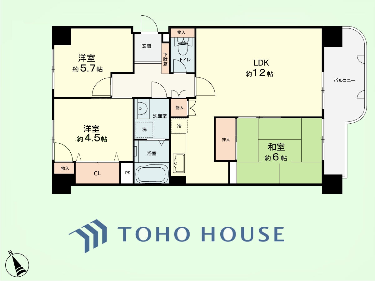 3LDK 専有面積72.38平米、バルコニー面積9.33平米