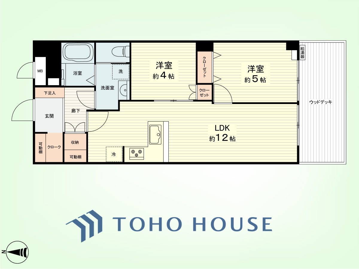 2LDK 専有面積55平米、バルコニー面積8.6平米
