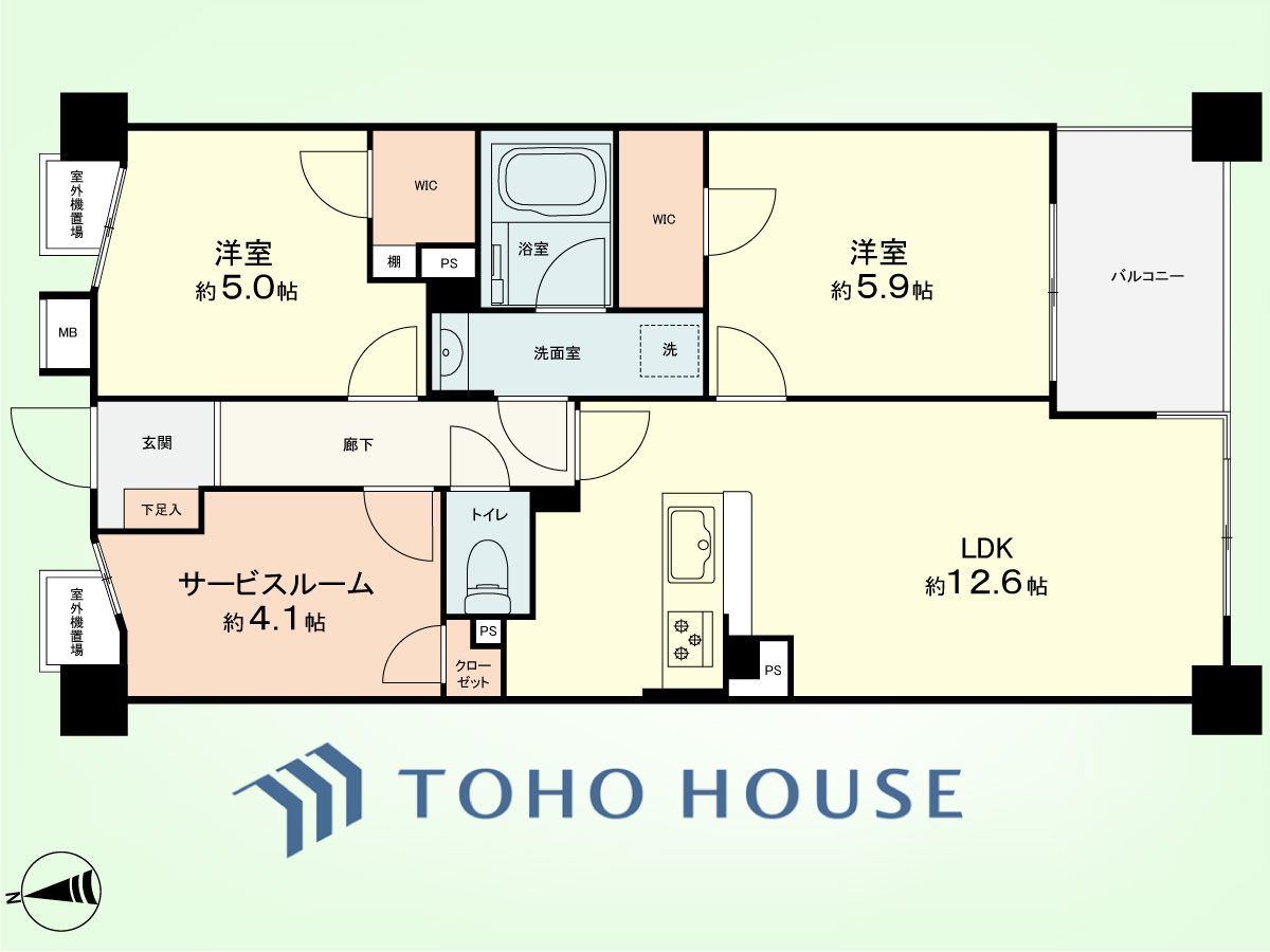 2SLDK 専有面積60.71平米、バルコニー面積5.07平米