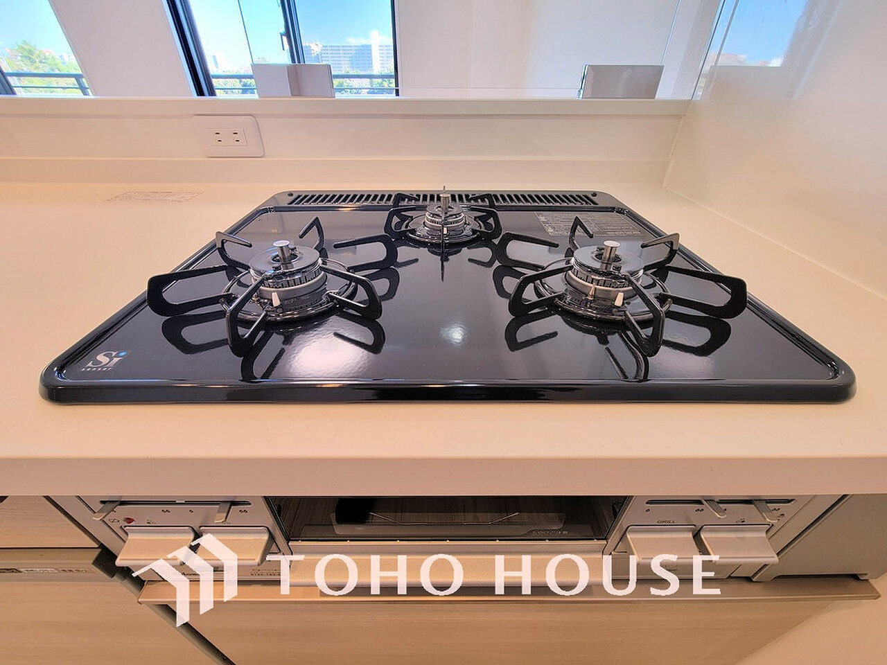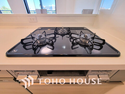 3口ガスコンロでお料理のスピードもUP。効率よくお料理できますね