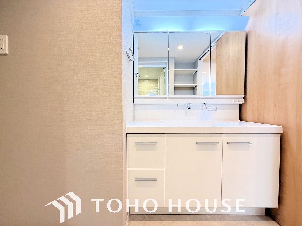 大きな洗面鏡付き、朝の身支度も楽しくなりますね