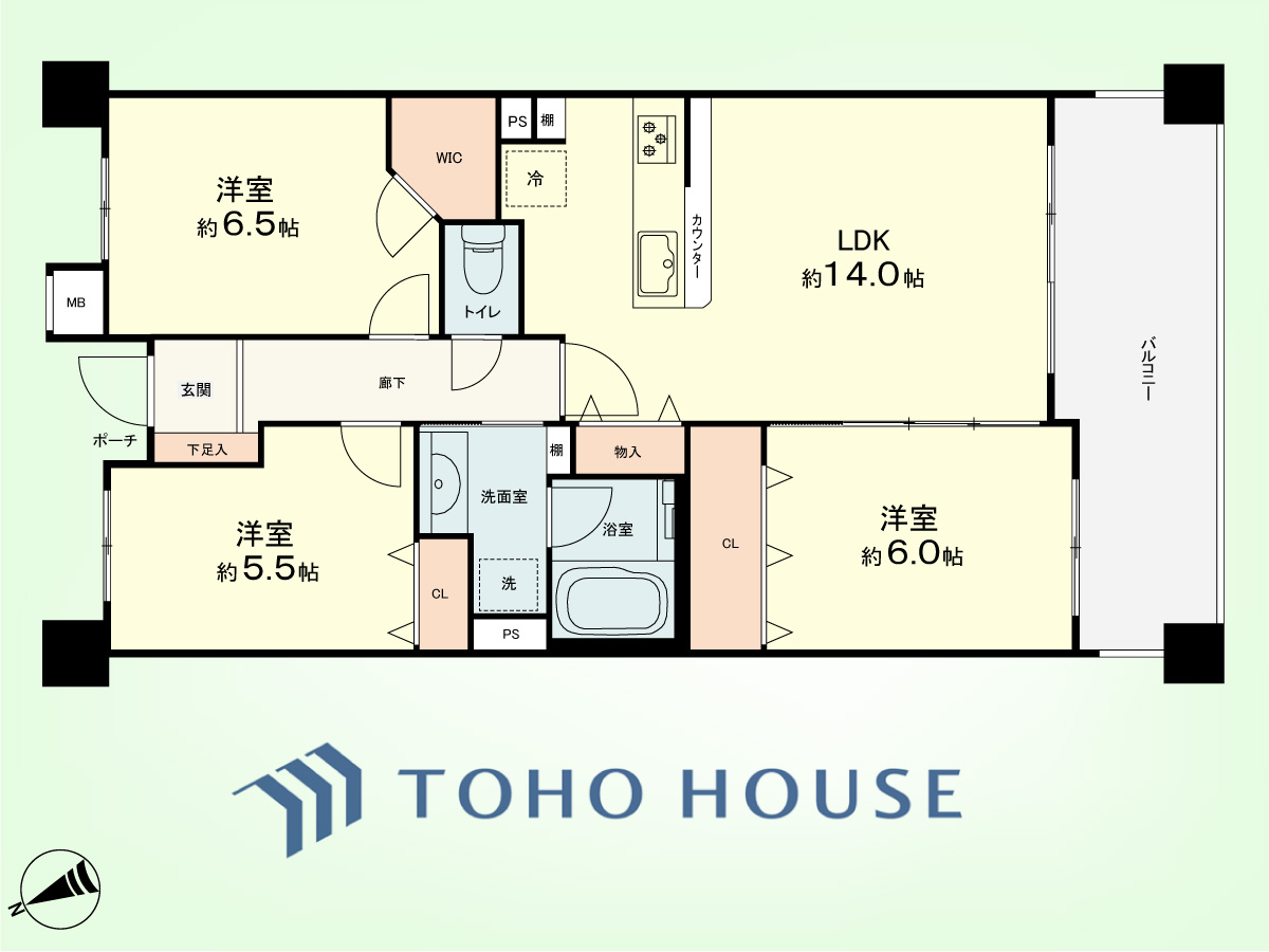 3LDK 専有面積71.82平米、バルコニー面積12.3平米