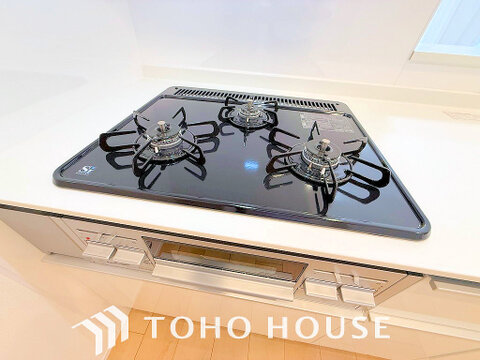 3口ガスコンロで効率よくお料理できますね