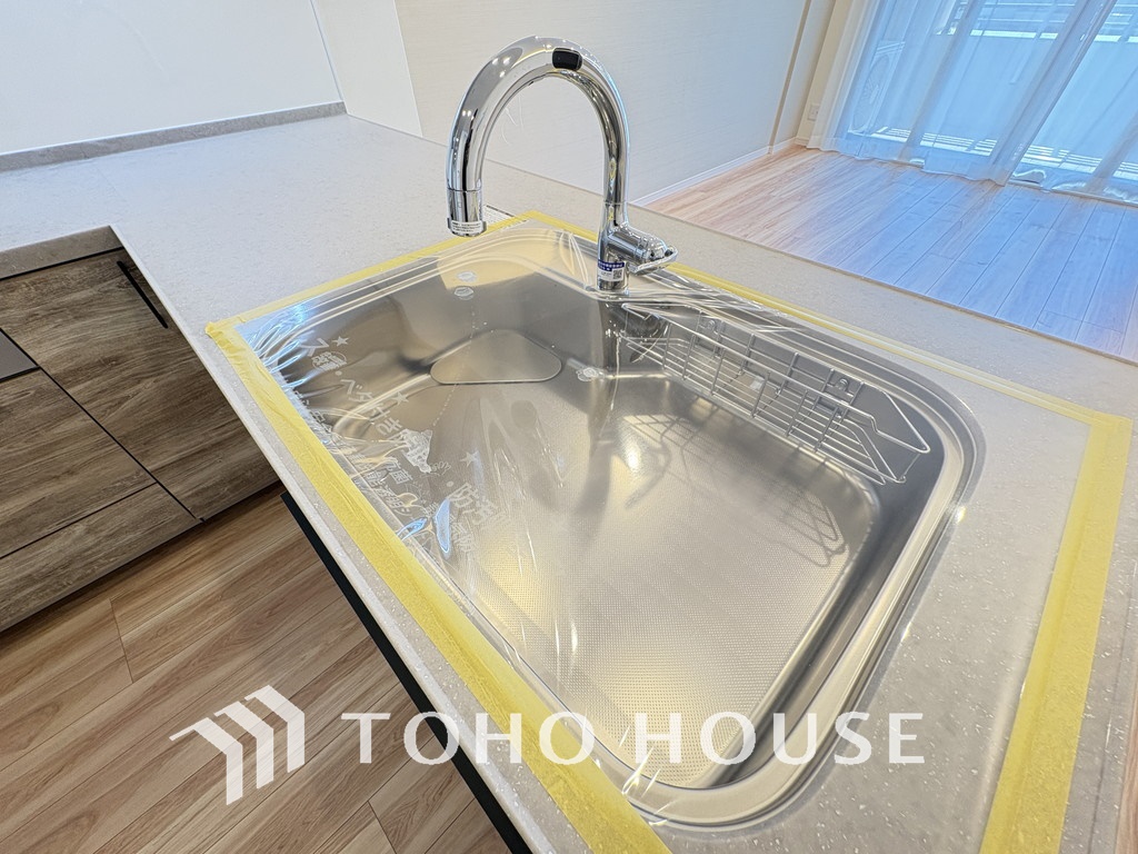 浄水機が内蔵されている便利なシャワー水栓タイプのシンクです