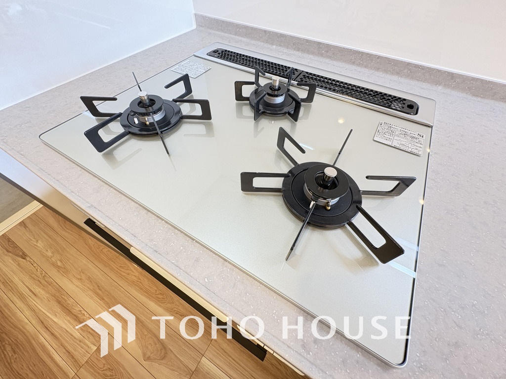 3口ガスコンロで効率よくお料理できますね