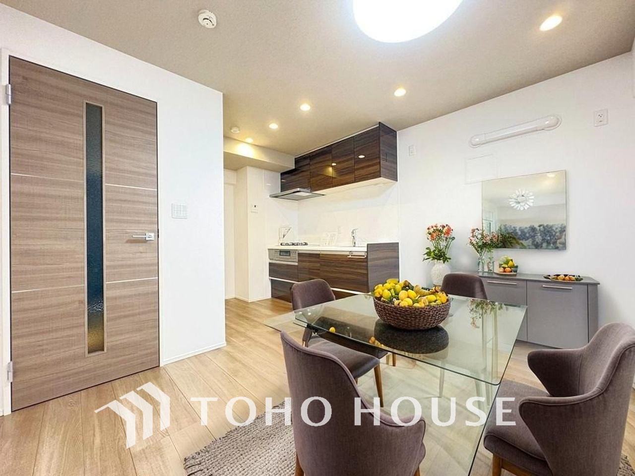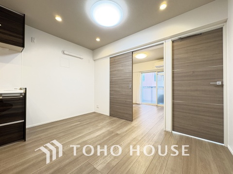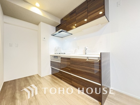 シンプルな部屋の雰囲気に溶け合うナチュラルキッチン