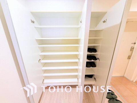 天井まである玄関収納はご家族分の履物も余裕で収納可能
