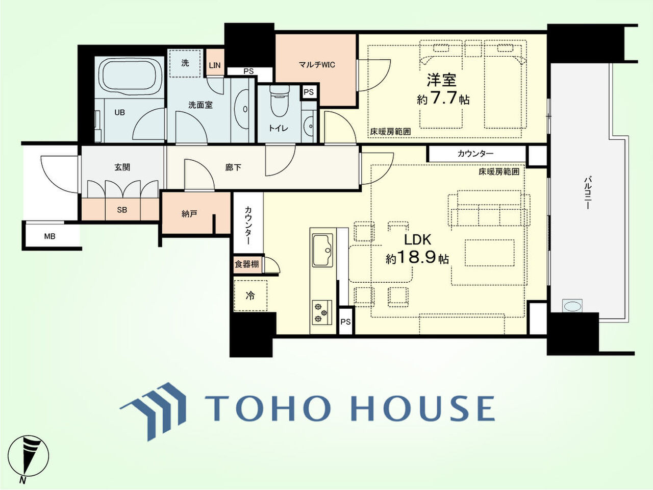 1LDK+納戸、LIN 専有面積71.84平米、バルコニー面積10.97平米