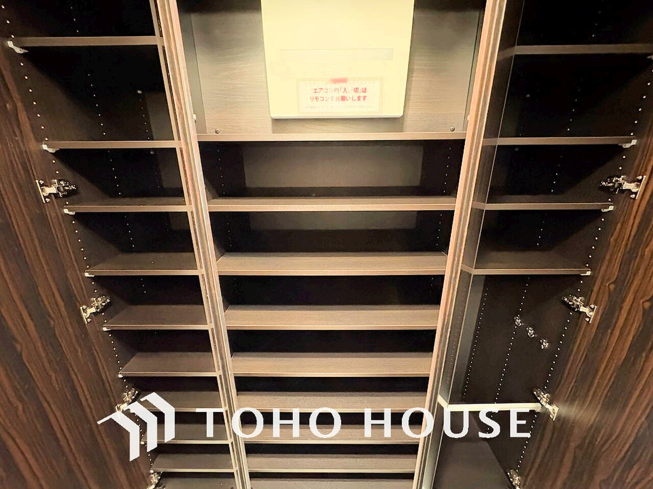 天井まである玄関収納はご家族分の履物も余裕で収納可能