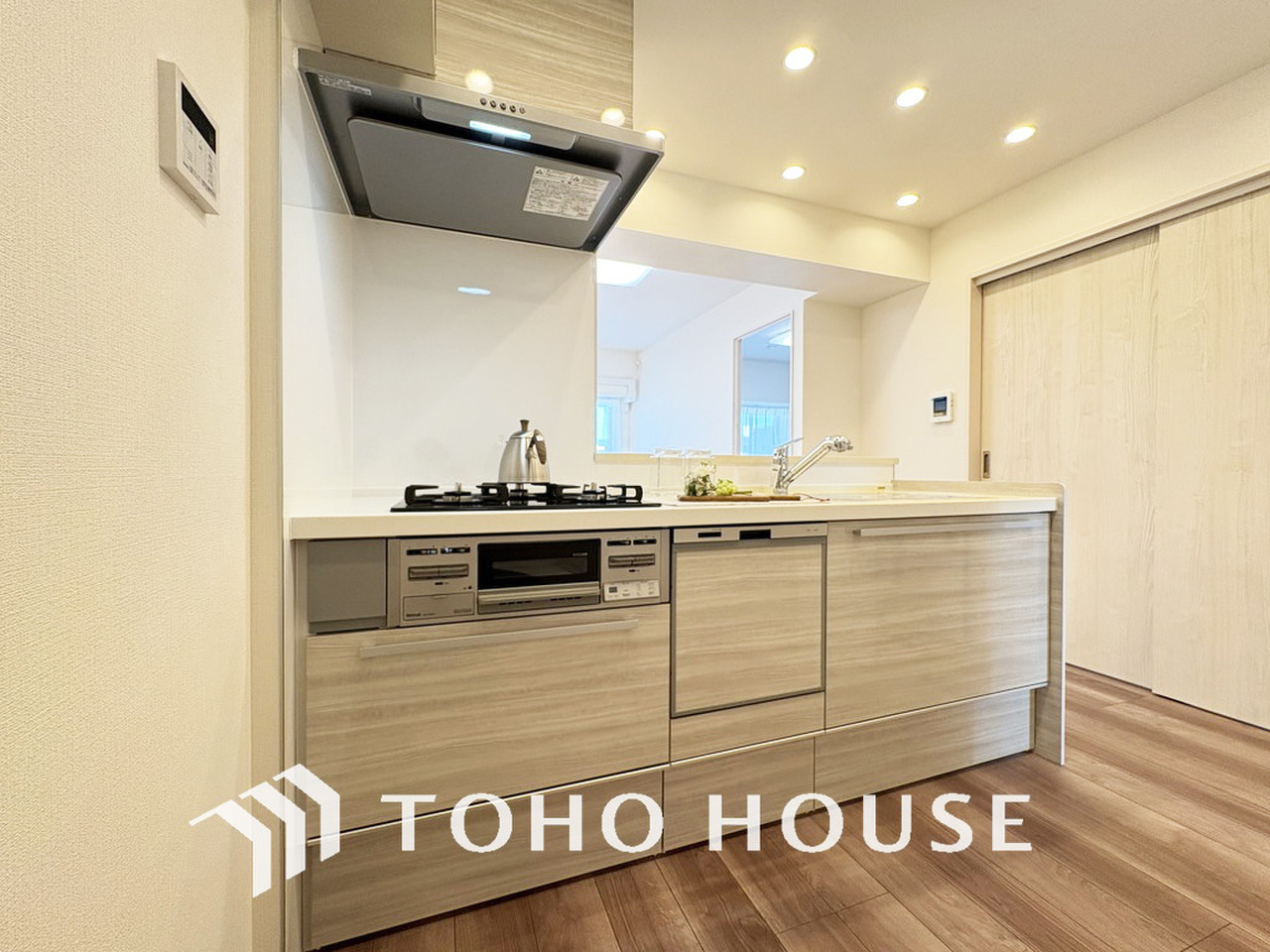 ビルトイン式食洗機を完備した、機能性に優れたシステムキッチン