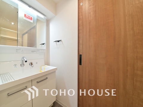 白を基調とした清潔感のある洗面室で朝の身支度を