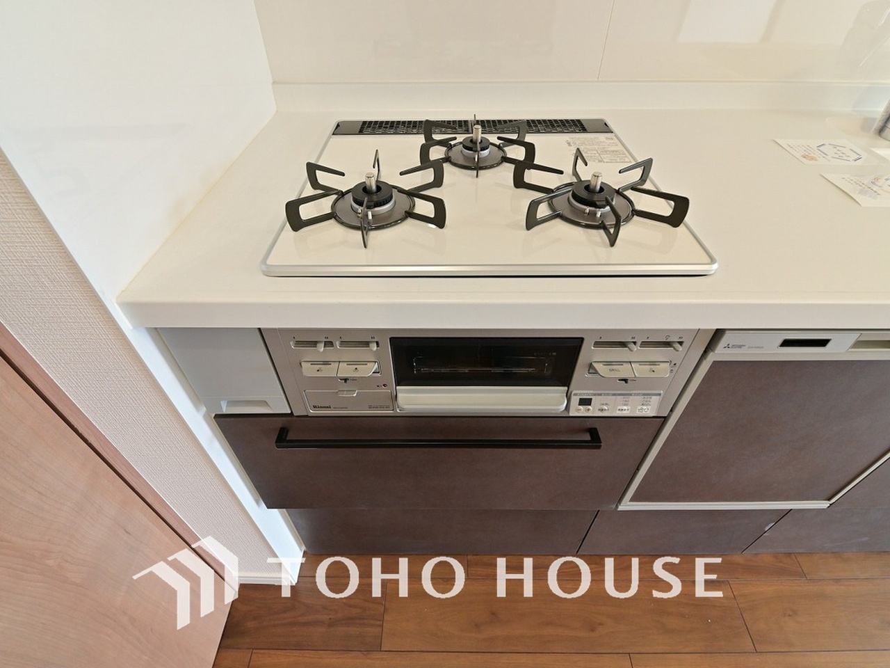 3口ガスコンロでお料理のスピードもUP。効率よくお料理できますね