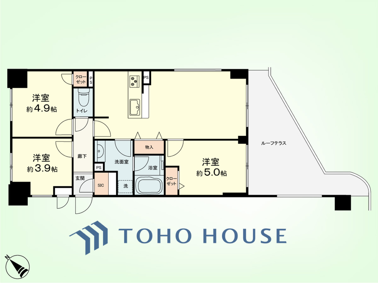 3LDK 専有面積56.37平米、ルーフテラス面積14.76平米