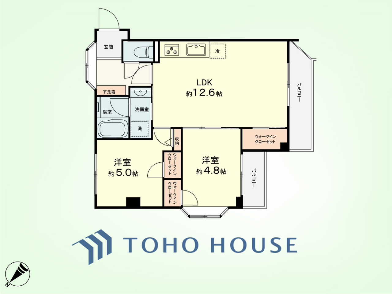 3LDK 専有面積49.58平米、バルコニー面積6.30平米