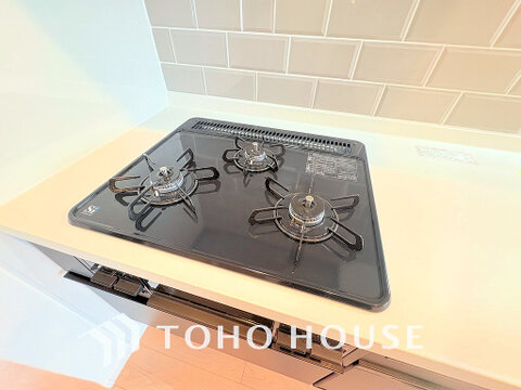3口ガスコンロでお料理のスピードもUP。効率よくお料理できますね