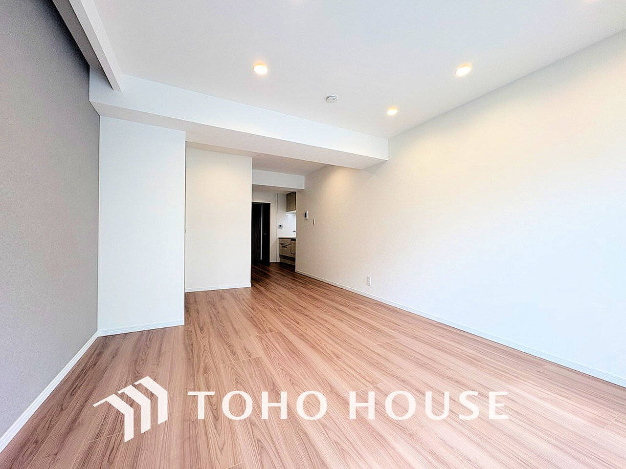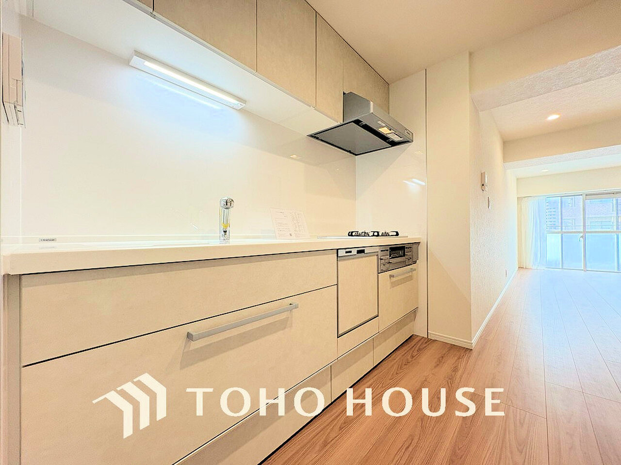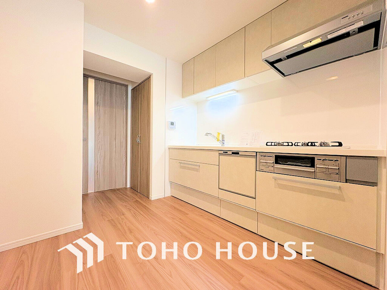 シンプルな部屋の雰囲気に溶け合うナチュラルキッチン