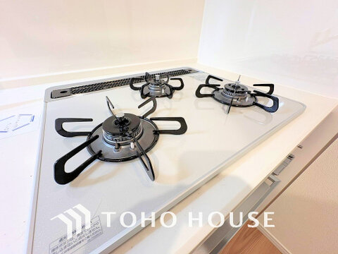 3口ガスコンロでお料理のスピードもUP。効率よくお料理できますね