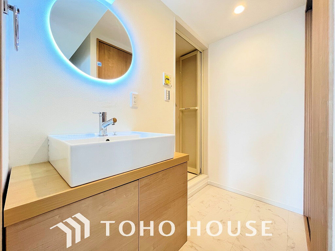 大きな洗面鏡付き、朝の身支度も楽しくなりますね