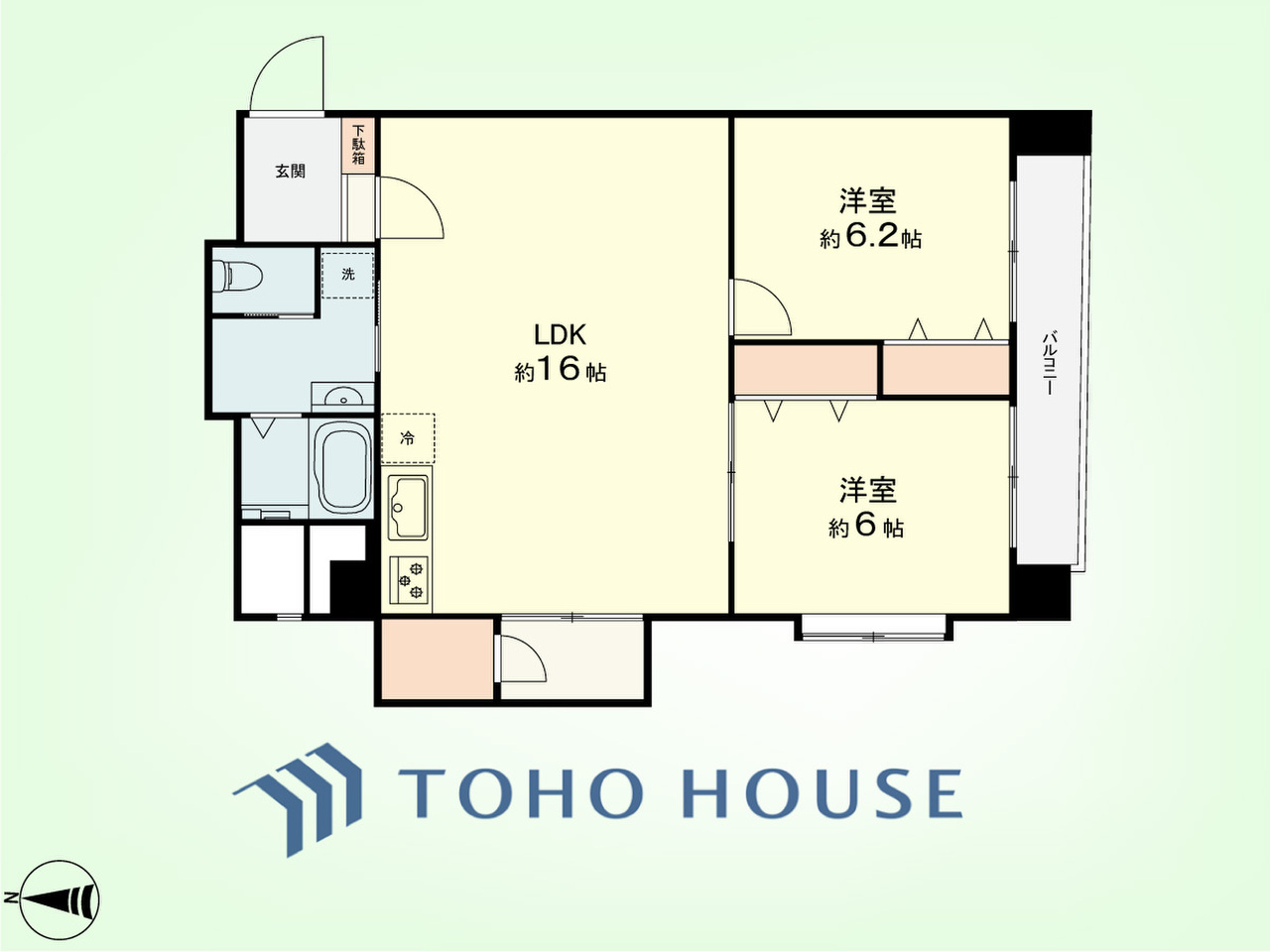 2LDK+物入 専有面積61.56平米、バルコニー面積7.64平米