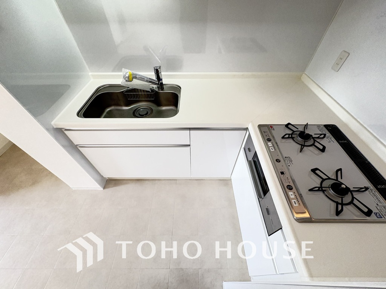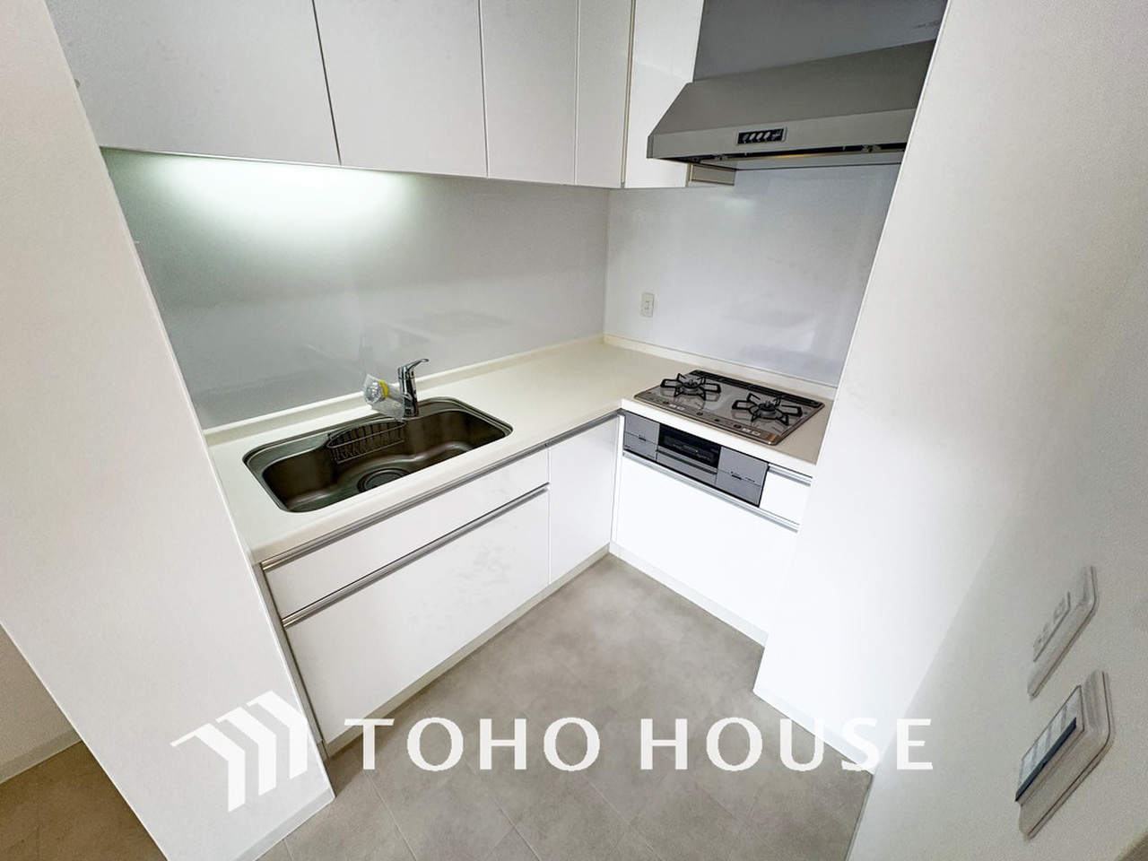 シンプルな部屋の雰囲気に溶け合うナチュラルキッチン