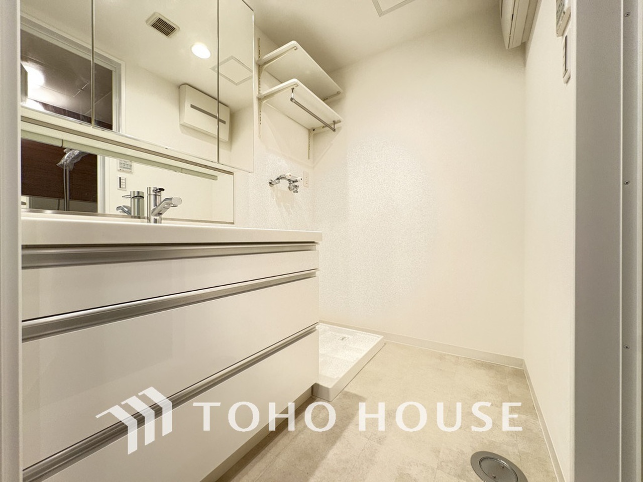 収納豊富で使い勝手の良い3面鏡仕様の洗面化粧台