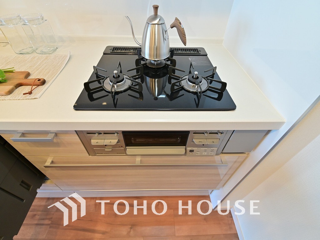 3口ガスコンロで効率よくお料理できますね