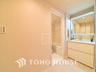 落ち着きのある色合いでまとめられた洗面室